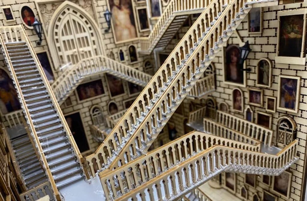 - Staircases can be rotated by turning a knob, creating the illusion of shifting paths and ever-changing directions
