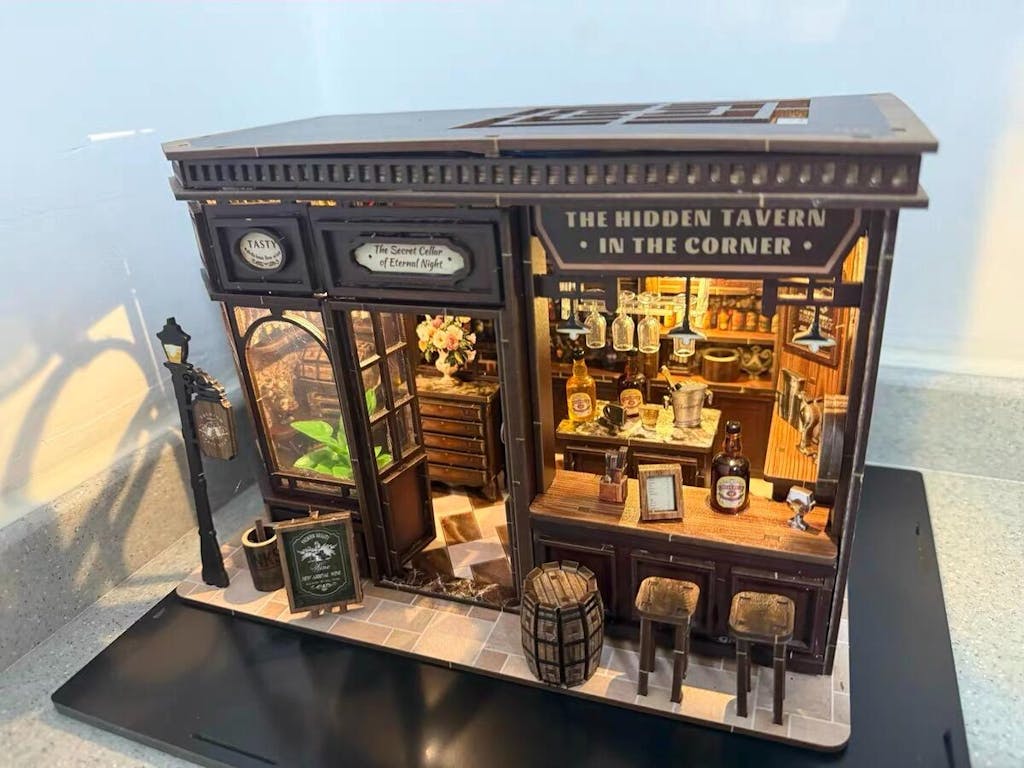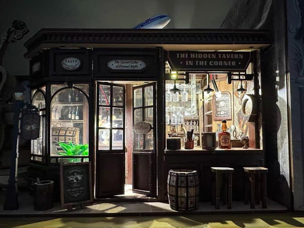 Step into the warm glow of the Crimson Oak Tavern, a richly detailed DIY miniature that invites you to imagine evenings filled with storytelling, clinking glasses, and flickering candlelight. With its intricately stocked bar, polished wood finishes, and ambient lantern light, this tavern captures the soul of a cozy corner pub tucked away.