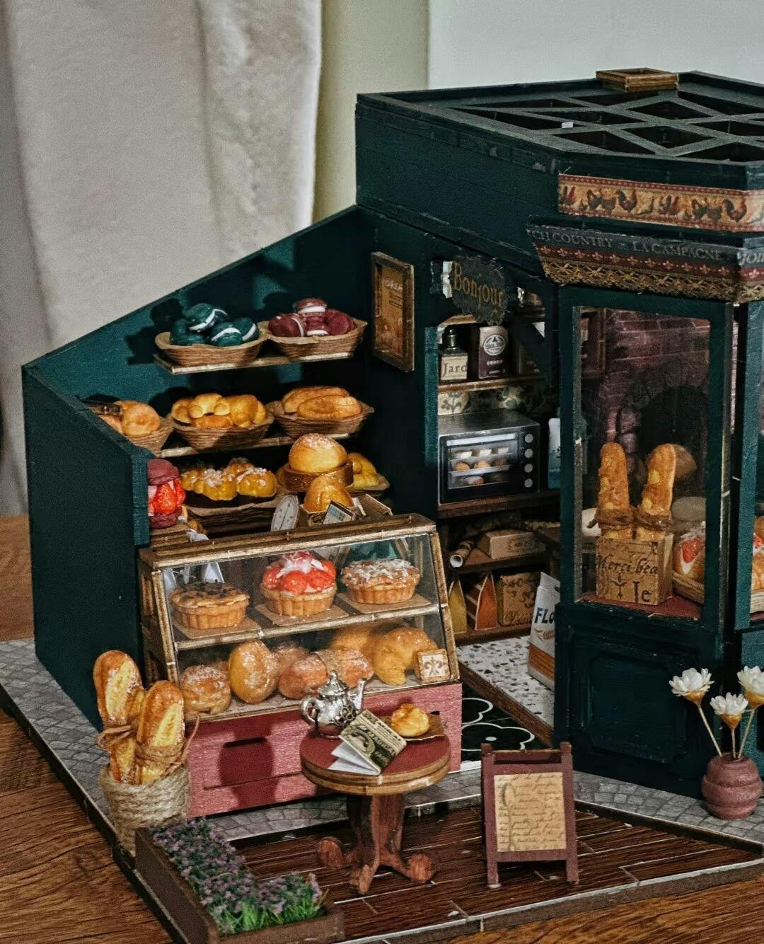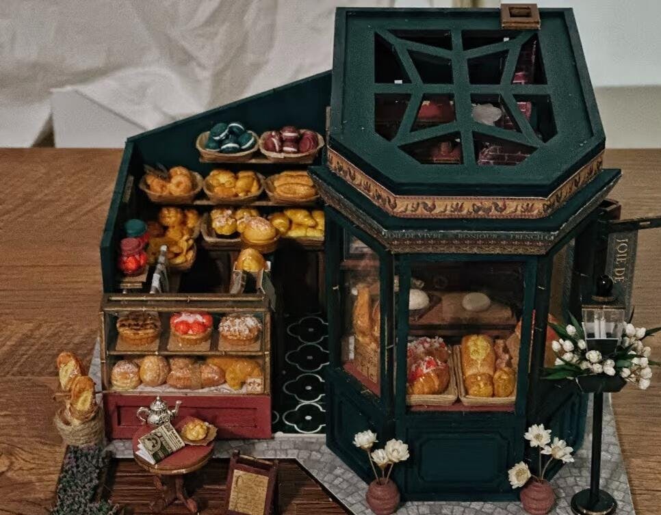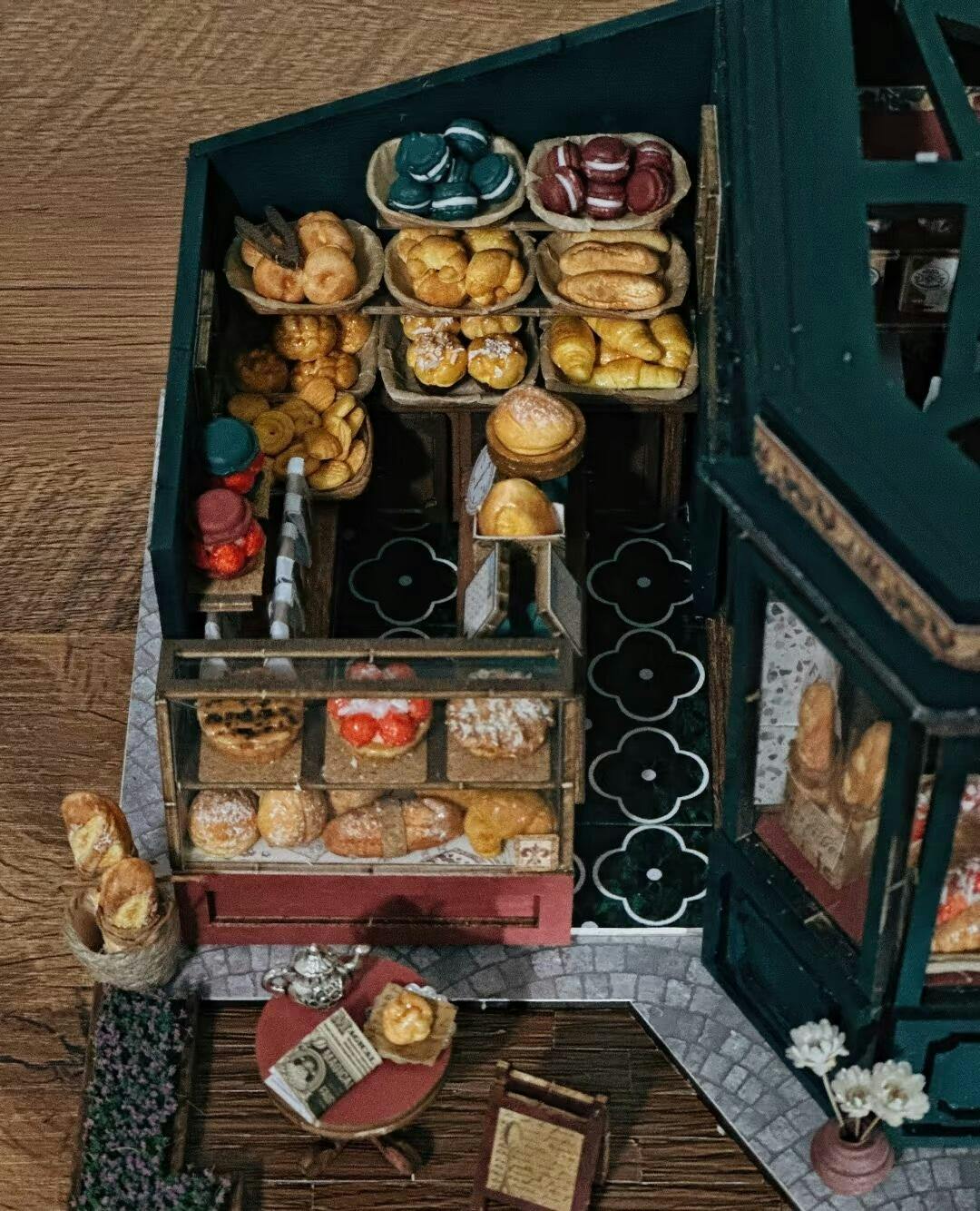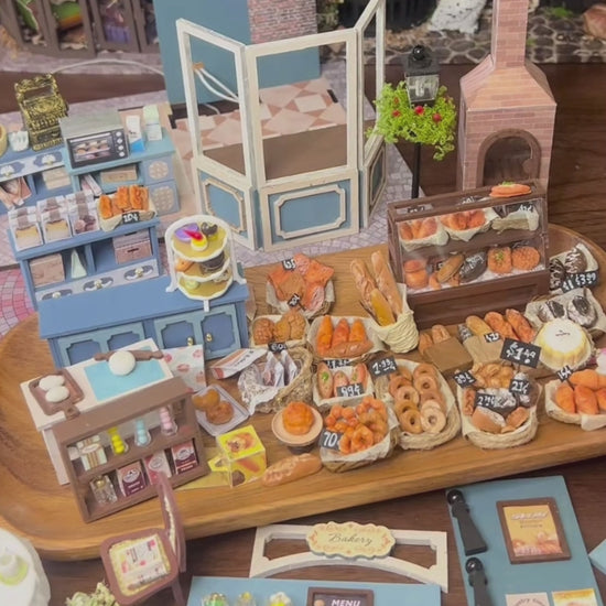 Step into the warm, buttery charm of The Little Loaf Bakery, where the shelves are always full and the croissants are always golden. This DIY miniature kit brings the magic of a Parisian-style bakery to life—complete with baguettes, pastries, cakes, and even a tiny café table set for two.