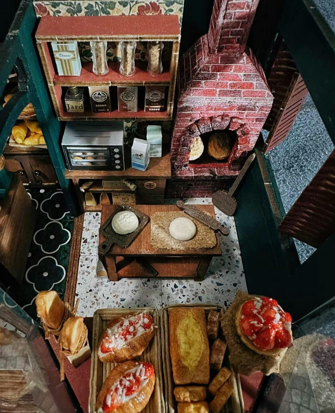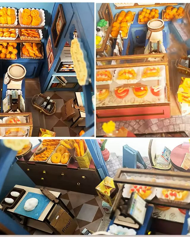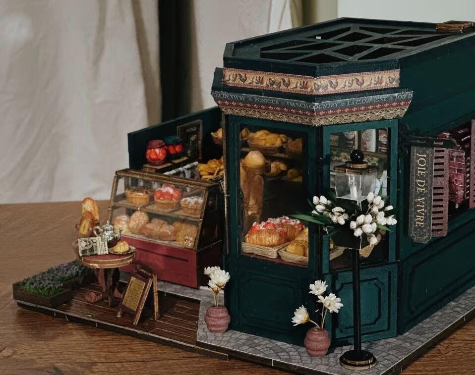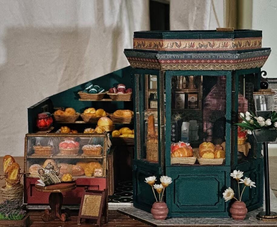 Step into the warm, buttery charm of The Little Loaf Bakery, where the shelves are always full and the croissants are always golden. This DIY miniature kit brings the magic of a Parisian-style bakery to life—complete with baguettes, pastries, cakes, and even a tiny café table set for two.