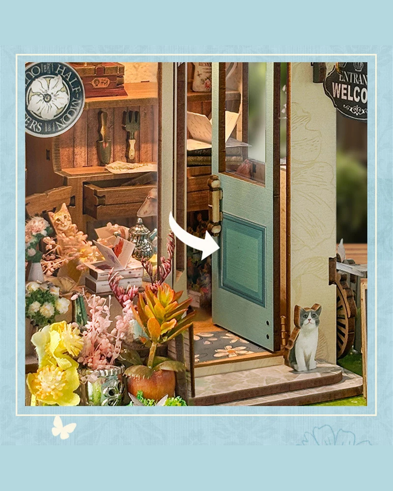 On one side, a cozy butterfly cottage filled with garden details, warm wood textures, and delicate winged visitors. On the other, a charming flower shop overflowing with blooms, greenery, and soft spring light. Together, they create a peaceful scene that feels alive. This set is all about winding down and enjoying the small details, and that “golden afternoon in the garden” feeling.