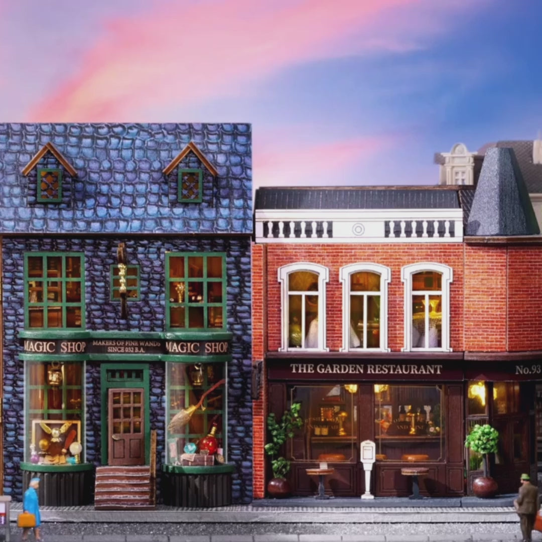 Cobblestone Corner brings a charming neighborhood moment to life — three building fronts gathered along a softly lit street, each with its own personality, yet perfectly at home together. This bundle is designed for builders who love storytelling through display. A place where an evening stroll might start at a curious shop window, pause for a warm meal, and end with a thoughtful gift picked up on the way home.